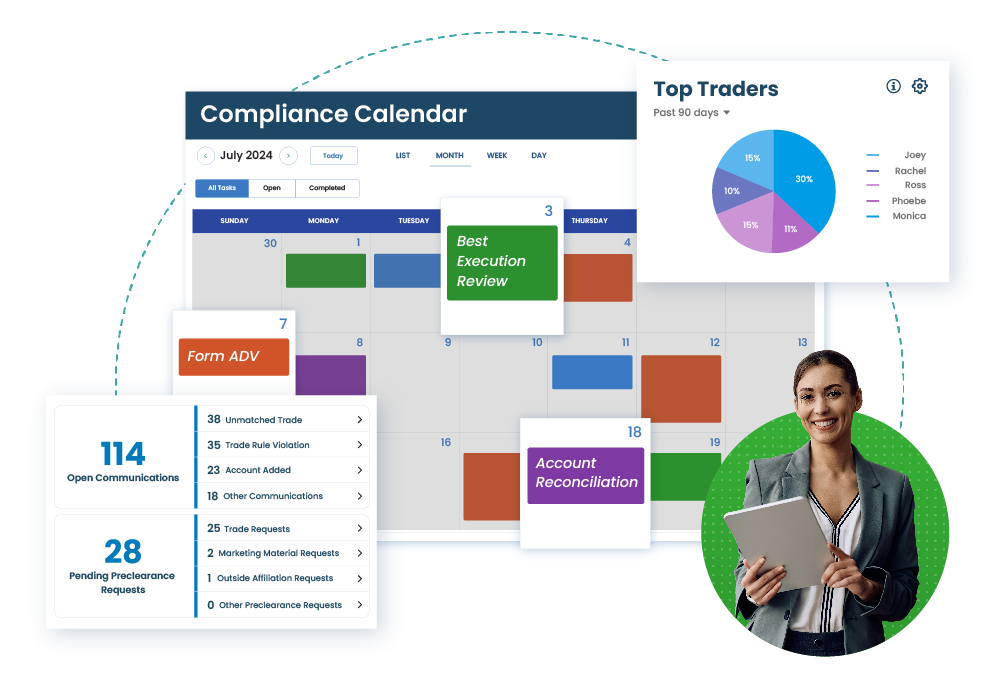 Scale your compliance strategy with a modern, easy-to-use platform that addresses the complex regulatory compliance needs of RIAs, wealth managers, broker dealers, private funds, investment banks, and insurance companies.