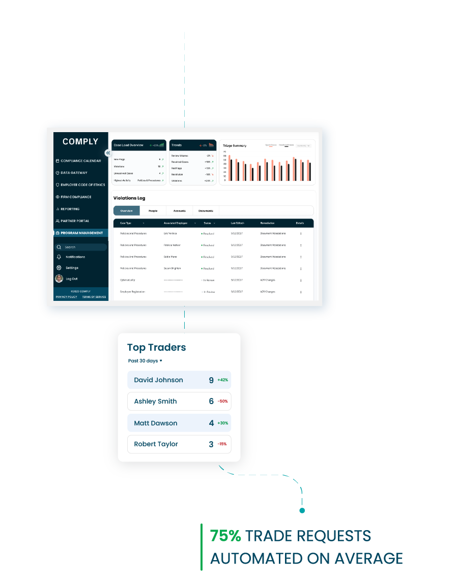 Discover why investment management, private equity, hedge funds, and more rely on Comply to automate tasks, monitor compliance protocols, and mitigate risk.