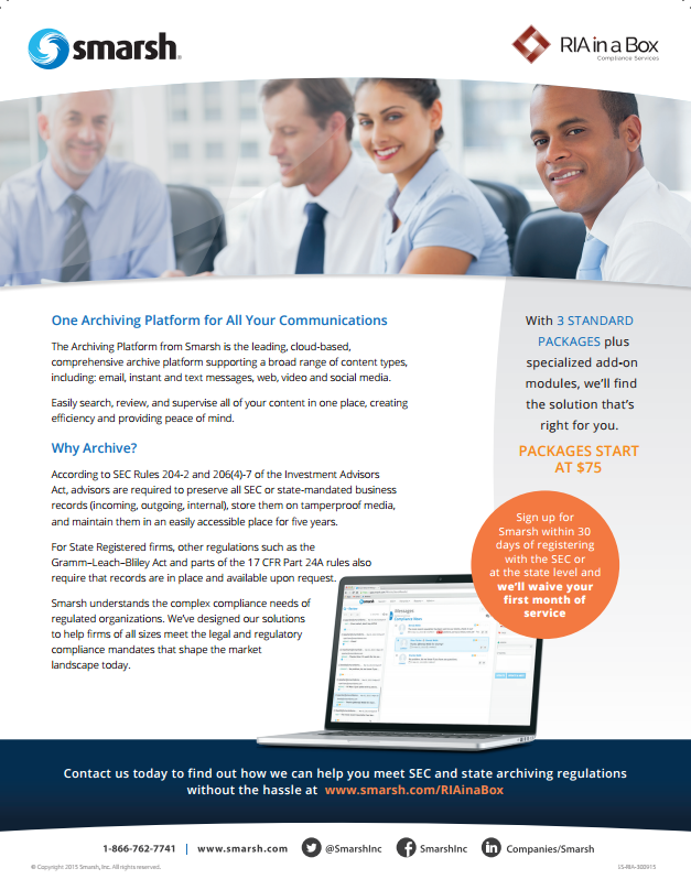 All firms also need to install a system to properly archive all client correspondence. Many of our clients utilize Smarsh to assist with their email and other archiving needs. Don’t forget that social media posts also need to be reviewed and archived.