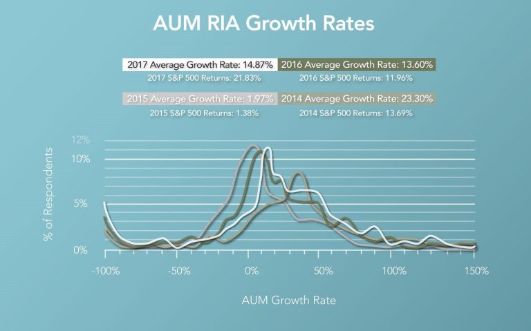 The chart below shows the average AUM growth rates for RIA firms in 2014, 2015, 2016, and 2017: