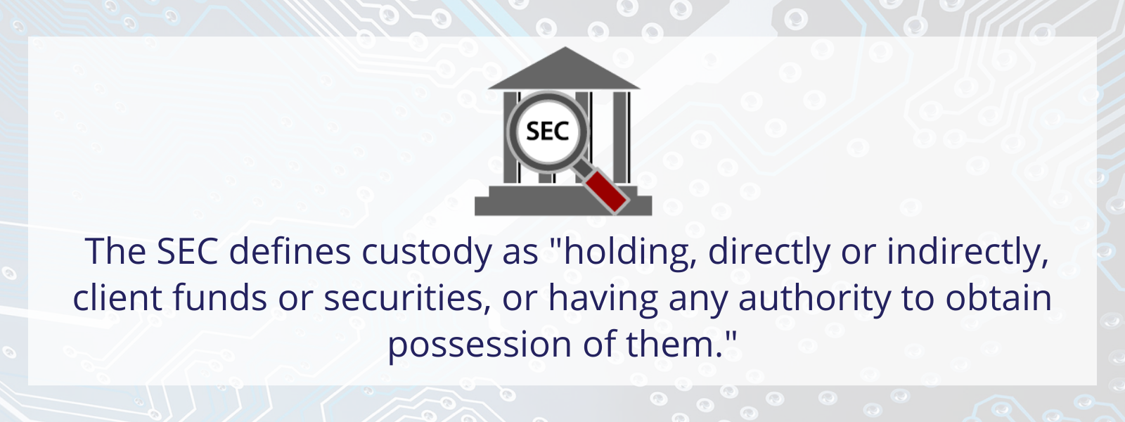 As compliance consultants to registered investment adviser (“RIA”) firms, we understand that there is often uncertainty about the interpretation of the custody rule. The Securities and Exchange Commission’s (“SEC”) Rule 206(4)-2 of the Adviser’s Act, also known as the custody rule, governs the holding of client securities and funds by federally registered RIA firms. In this blog post, we provide an overview of state and federal custody rules, common deficiencies, and the requirements for RIAs.