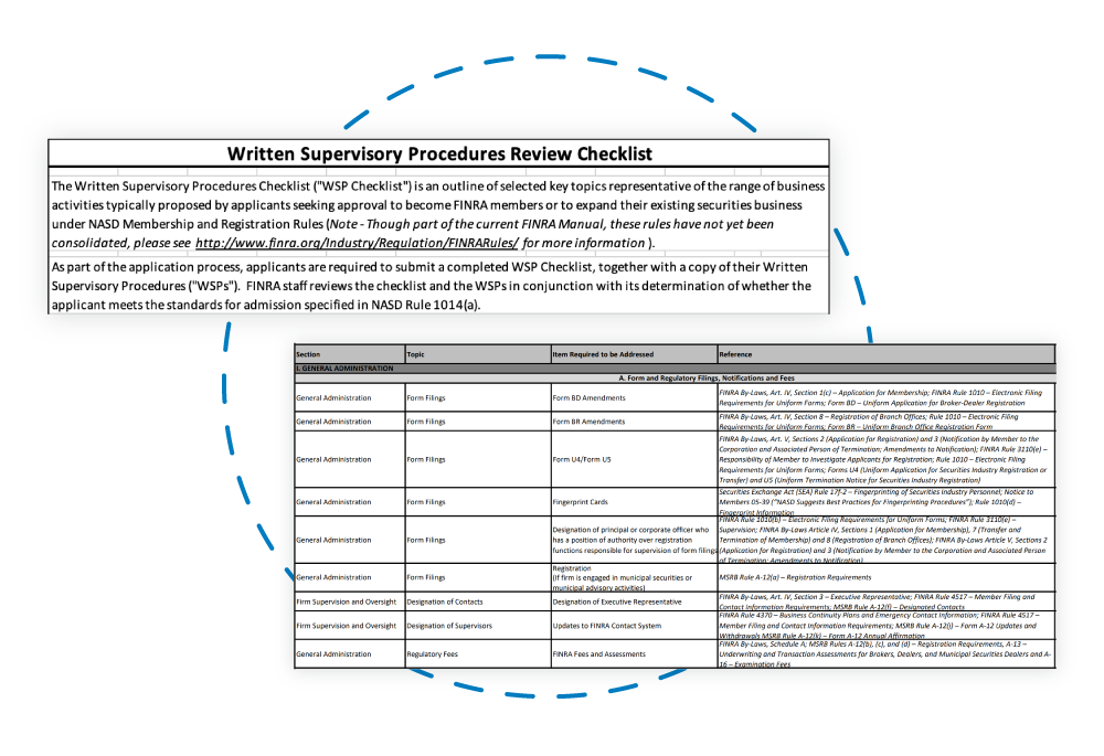 As most broker-dealers are regulated by the SEC and FINRA, they must create a compliance program, including WSPs tailored to its specific business activities and operations.